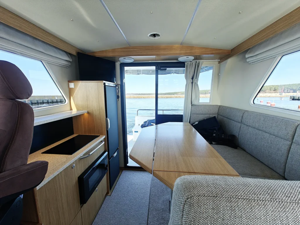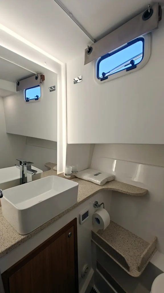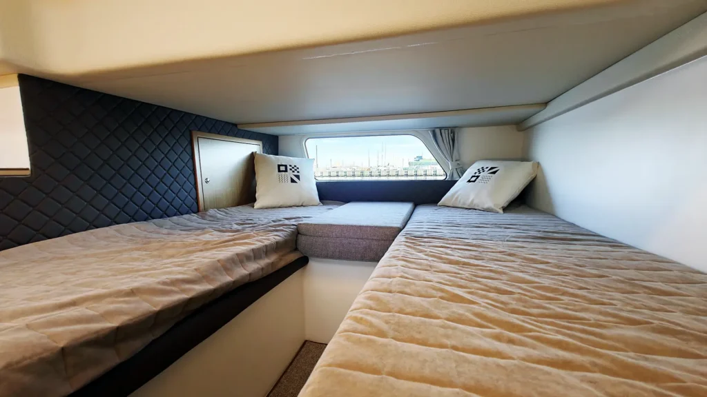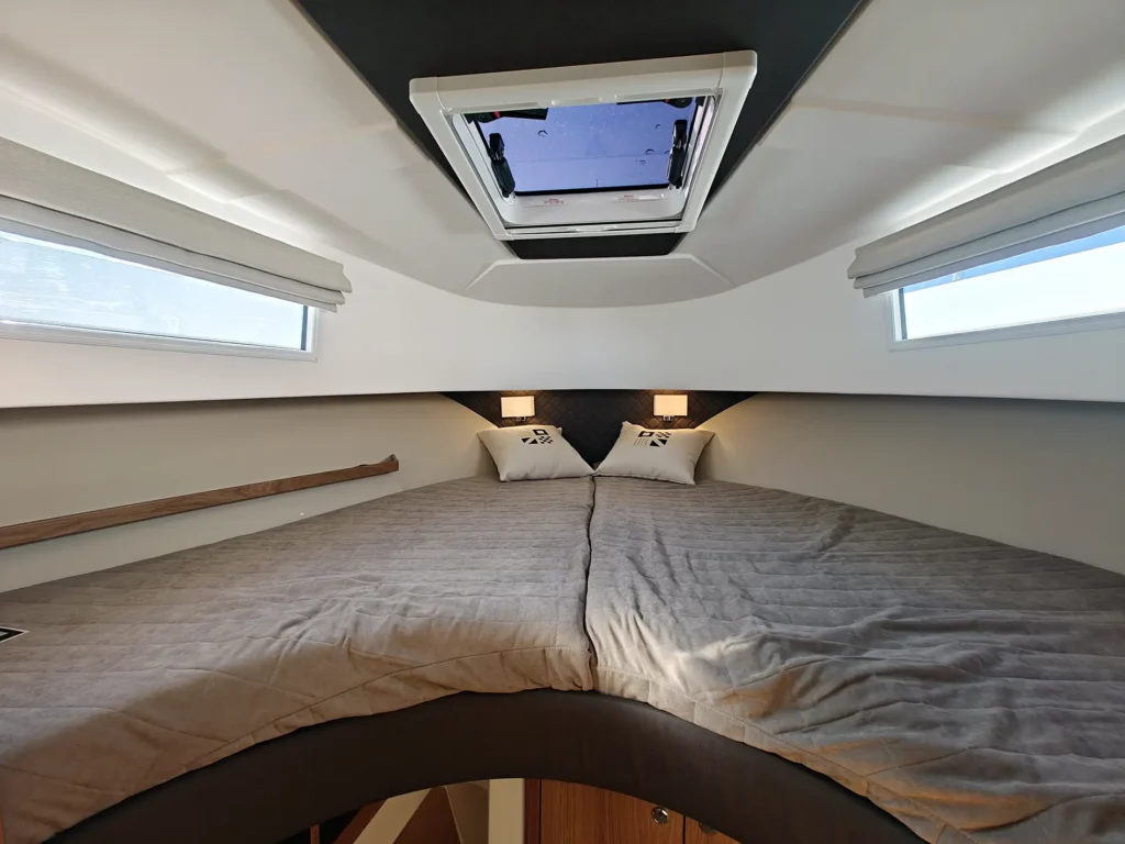 Nord Star 33+ on oma olemuselt ehtne põhjamaise kontseptsiooni ja rafineeritud disainiga paat. Ei mingeid liigseid vidinaid ega tiluliusid. Paadis on kaks kajutit, üks vööris ja teine salongi põranda all. Vöörikajuti juures on kaks ruumi, kuhu proovisõidupaadil oli mõlemasse ehitatud WC. Kui ühest WC-st piisab, võib teist ruumi kasutada kas riidekapina või ehitada sinna näiteks köögi. Kui vöörikajut on põhimõtteliselt klassikalise lahendusega, siis salongipõranda alla jääv kajut on lahendatud nii, et kui selle olemasolust ei tea, siis esimese hurraaga seda ei avastagi.